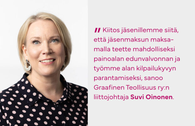 Toimialan kilpailukyvyn ja vastuullisuuden edistäminen on kyselyn mukaan tärkeää, ja GT onkin myös jatkossa mukana rakentamassa vahvempaa graafista teollisuutta.